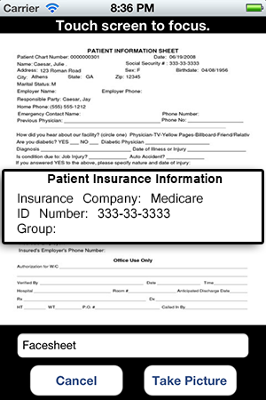 Face Sheet SupportEasy insurance data captureMake today the last day your biller asks you for your face sheets. Deliver face sheets to the back office with a snap of your device's camera. |