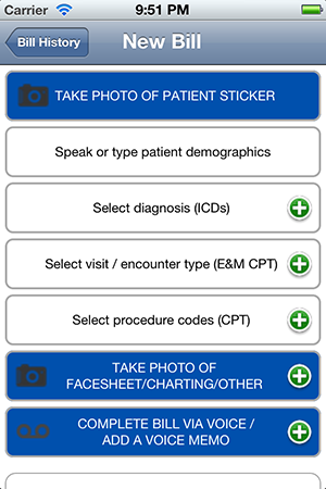 Voice to Text TechnologyNo manual data entry!Free your thumbs from typing. Use real time, HIPAA compliant voice to text technology to speed charge creation and navigation. |